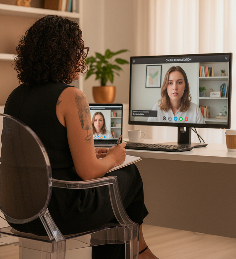 O atendimento online oferece a mesma eficácia e qualidade das sessões presenciais. Através de uma conversa pelo Google Meet ou WhatsApp, criamos um espaço seguro e acolhedor para seu processo de autoconhecimento.
